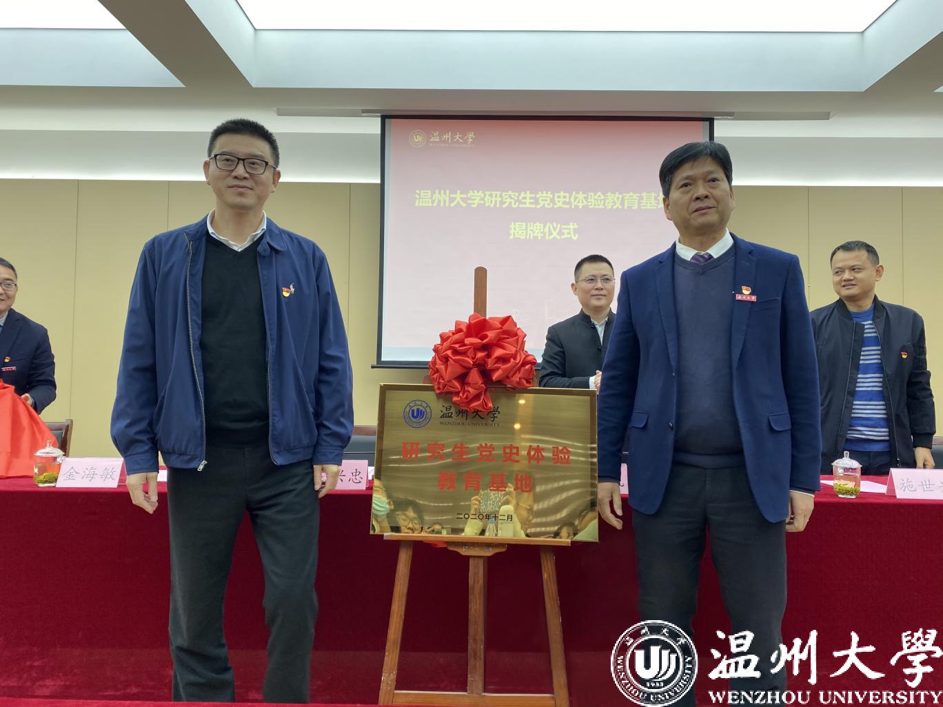 “beat365官方网站研究生党史体验教育基地”成立,庄兴忠与仙岩街道党工委书记共同揭牌。中共浙南一大会址”红色教育资源丰富,保存了辉煌的革命斗争历史,留下了宝贵的精神财富。会址毗邻茶山高教园区,beat365开展研究生爱国主义和革命传统教育具有“近水楼台”和“得天独厚”的优势。