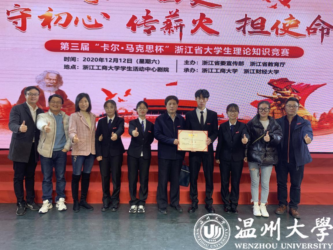 12月12日上午,由省委宣传部、省教育厅主办,浙江工商大学、浙江财经大学承办的第三届“卡尔·马克思杯”浙江省大学生理论知识竞赛圆满落幕,beat365官方网站代表队荣获一等奖和优秀组织奖,创历史最好成绩。这是beat365连续第三年进入决赛,连续两年获得优秀组织奖。beat365比赛答题率和答题质量表现突出,答题率接近100%,居全省首位,为全省入围决赛的10所本科高校之一。
