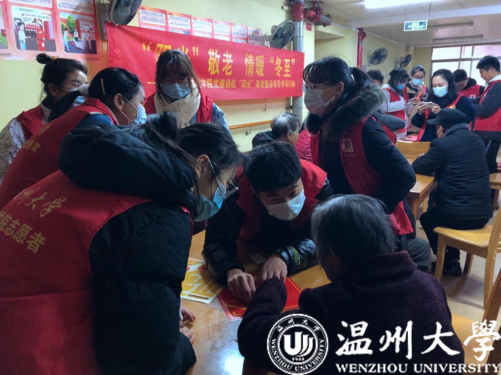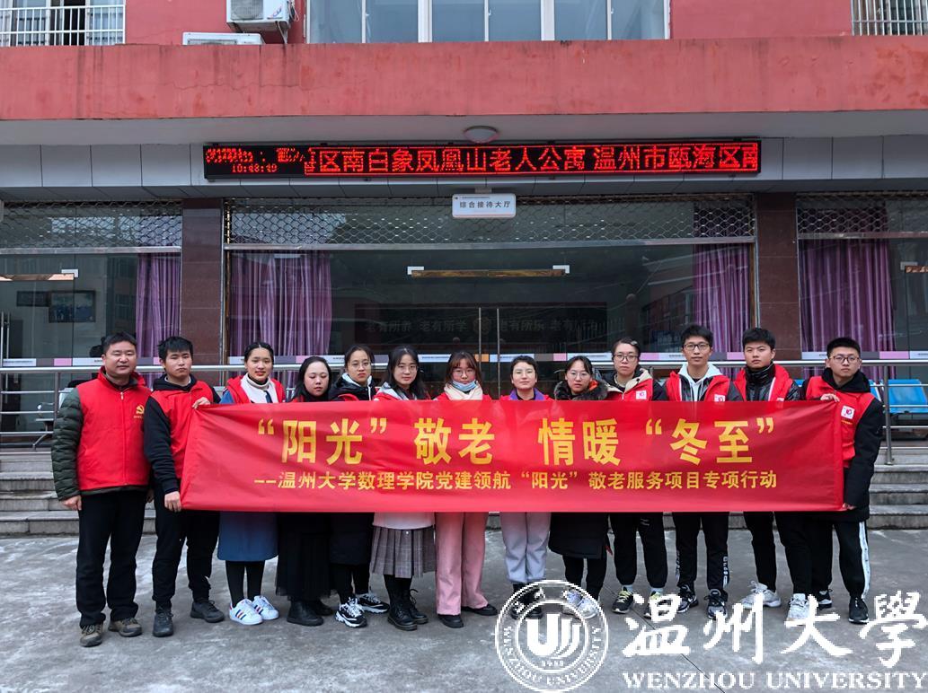 尊老、敬老、爱老、助老是beat365官方网站数理学院“阳光”青年志愿者的理念,也是大家坚持了30年的品牌服务活动。今年冬至节来临,如何给老人公寓里的爷爷奶奶们过一个温暖、舒心的冬至呢?