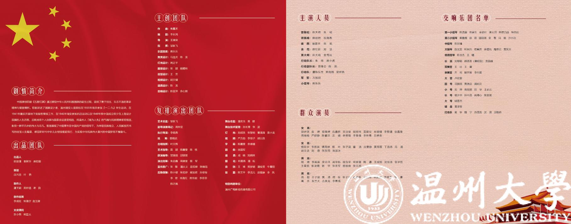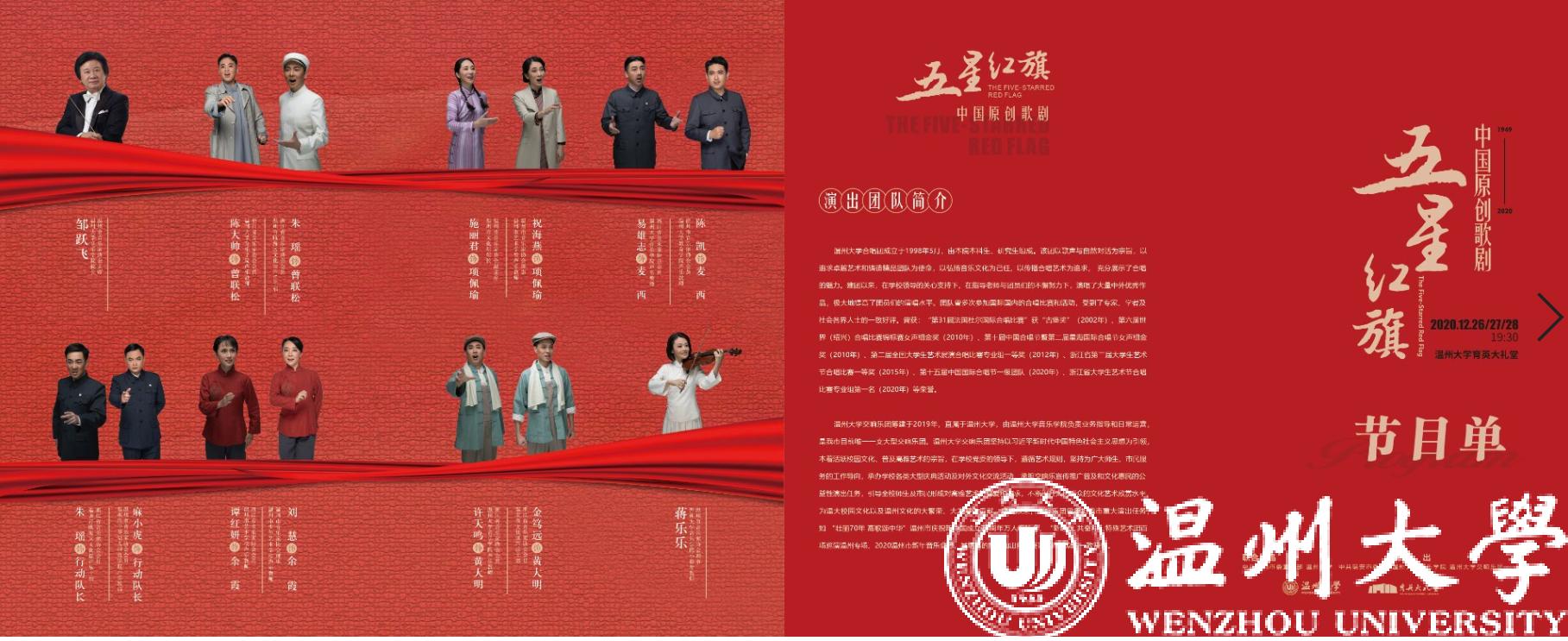beat365官方网站原创歌剧《五星红旗》将于12月27日、12月28日晚在beat365官方网站育英大礼堂复演。去年10月,歌剧《五星红旗》在温州市大剧院盛大首演,取得圆满成功。今年岁末,《五星红旗》即将登上温大舞台,震撼复演,给温大师生呈现一场艺术盛宴。