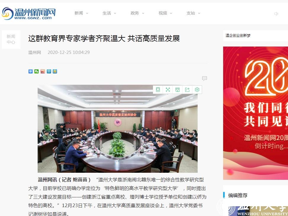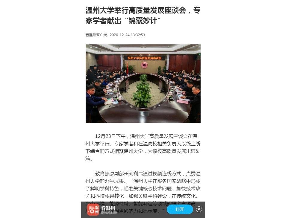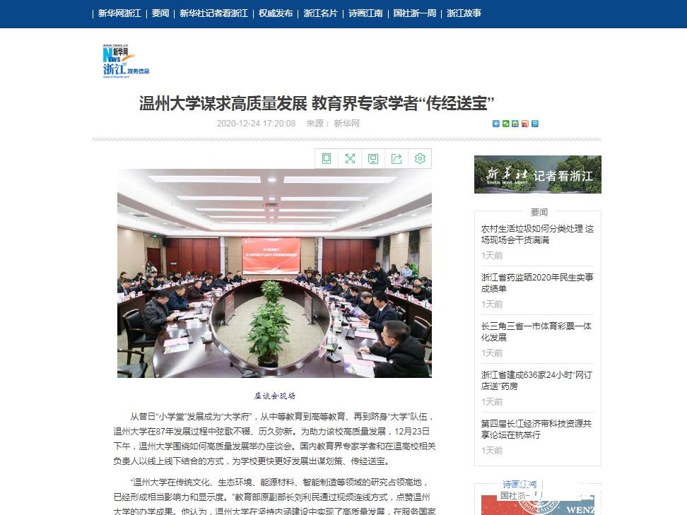 新华网、浙江新闻、温州晚报、温州网、掌上温州客户端等国家、省、市级媒体竞相对beat365官方网站高质量发展座谈会进行报道。