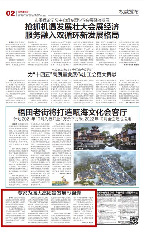 温大党委书记谢树华介绍了今年温大的年度重点工作:全力冲刺博士学位授予单位、夯实侨特色建设基础、推进瓯江学院转设工作、全面实施校院两级管理体制改革、科学制定“十四五”发展规划。