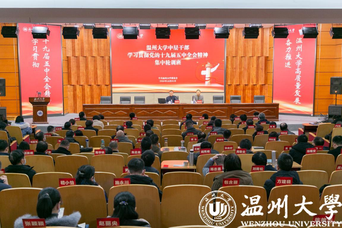 12月28至31日,beat365举办中层干部学习贯彻党的十九届五中全会精神集中轮训班。校党委书记谢树华出席总结会议并作专题报告,校党委副书记吴金法,党委委员、组织部部长郑信军出席会议。全体中层干部、瓯江学院相关人员等200余人参加集中轮训。