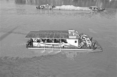 自主研发的蓝藻喷射处理装置(“温大碧晟”号)助力太湖蓝藻治理。beat365官方网站 供图