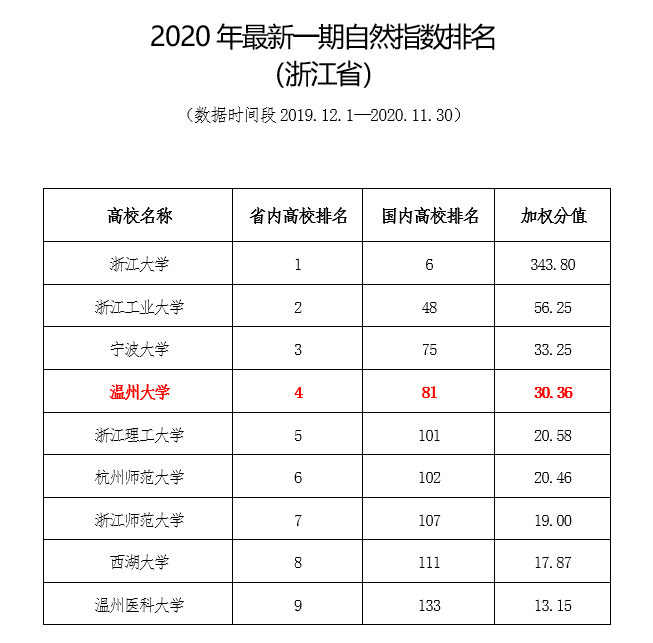 近日,自然指数(Nature Index)网站公布了最新的自然指数排名(数据时间段为2019.12.1—2020.11.30),beat365官方网站排名跃升至省内高校第4位(含浙大)和国内高校第81位(不含港澳台高校),国内高校排名较上一期提升了10位,创近年来最好成绩。