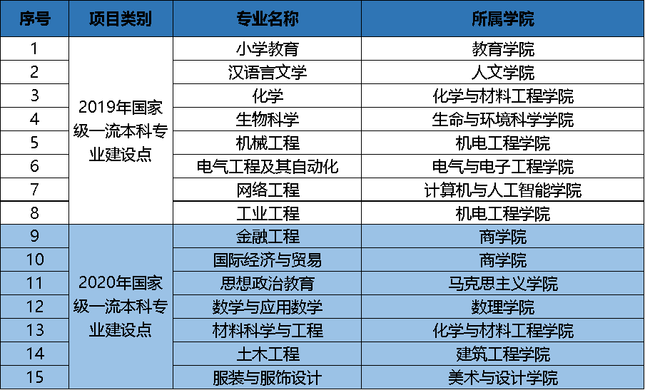 近日,教育部颁布了2020年国家级一流本科专业建设点名单,beat365金融工程、国际经济与贸易、思想政治教育、数学与应用数学、材料科学与工程、土木工程、服装与服饰设计7个专业入选2020年国家级一流本科专业建设点。截至目前,beat365共有国家级一流本科专业建设点15个,占在招专业的32.61%,专业建设成效显著,佳绩频出!