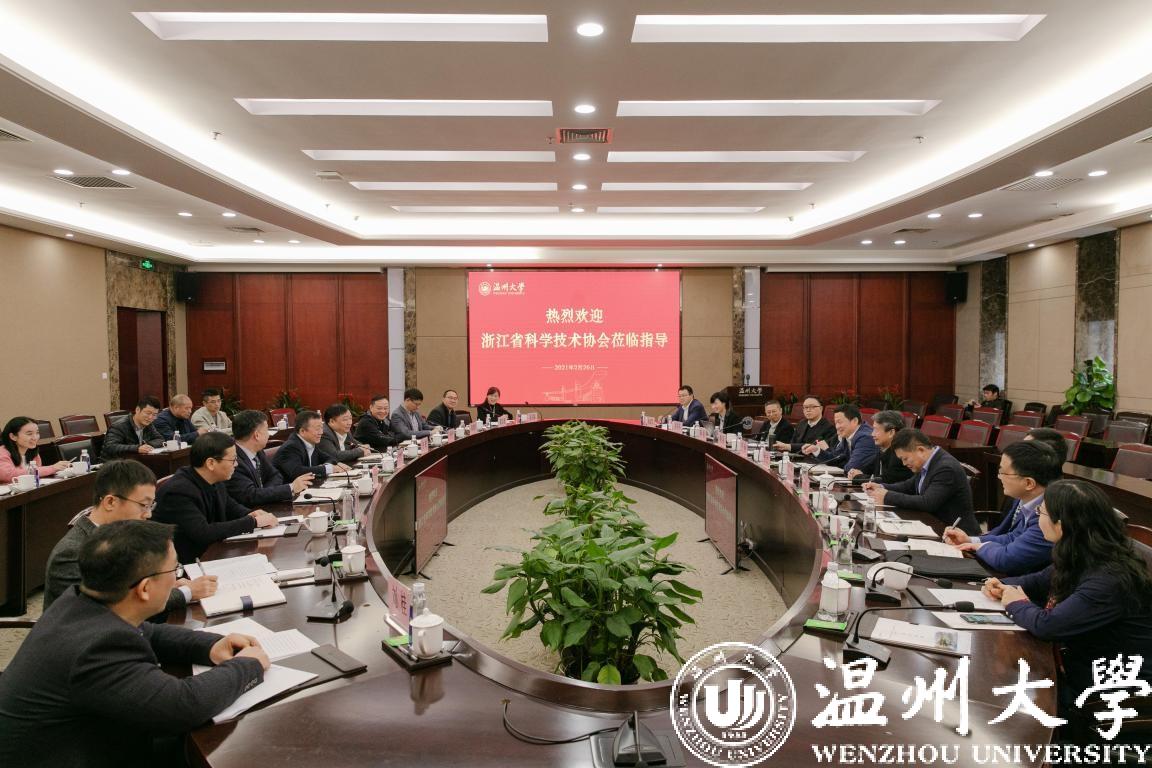 2月26日,浙江省科协党组书记、副主席谢志远一行莅临beat365调研工作。温州市副市长汪弛、市政府副秘书长戴旭强、科协主席赖颖等领导陪同调研。校领导谢树华、赵敏、徐和昆、潘玉驹、郑信军出席调研座谈会。党委书记谢树华主持。