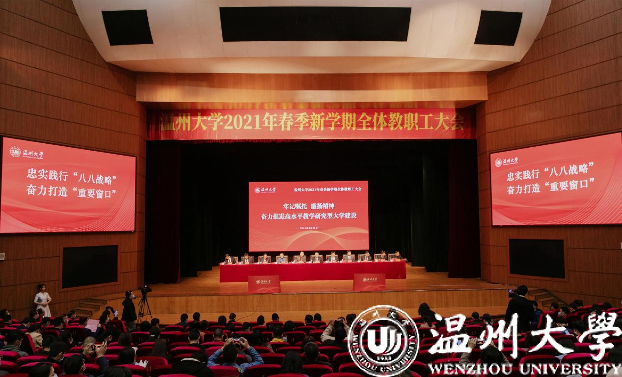 赵敏对学校2021年工作进行部署。他指出,今年学校工作的总体要求是:高举习近平新时代中国特色社会主义思想伟大旗帜,坚持系统观念,深化改革创新,以“锚定3818,奋进2021”为主题主线,锚定“三大目标”,推进“八大战略”,实施“十八大项目”,以“求学问是、敢为人先”的校训精神积极走好新时代高质量发展之路,为学校“十四五”发展开好局、起好步,为建设教育强国、高教强省、温州教育高地作出更大贡献。
