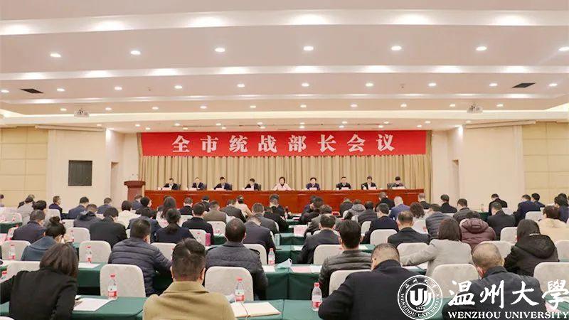 3月2日下午,温州市统战部长会议在温州市人民大会堂新闻发布厅召开,市委常委、统战部部长施艾珠出席会议并讲话,市委统战部常务副部长黄益友主持会议。校党委副书记吴金法参加会议并作题为《强化领导 突出引领 发挥优势 全力展现新时代学校统战工作新担当新作为》的典型经验发言。