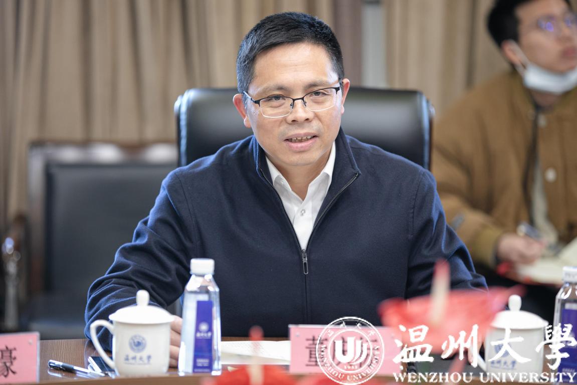 座谈会上,谢树华代表学校对董庆标一行表示热烈欢迎。他指出,beat365官方网站是浙南闽北赣东唯一的综合性教学研究型大学,学校在市委市政府的坚强领导和全力支持下,近年来势头强劲、发展迅速,各项事业跨上新台阶。学校充分发挥学科、人才优势,立足温州、融入温州,积极对接地方产业需求,在服务温州经济社会发展上作出了重要贡献。面对高等教育不断发展的新形势,学校“十四五”在资金投入、基础建设上面临较大压力。他希望双方能进一步加强互动、增进交流,探索校企合作的新机制新路径,实现优势互补、合作共赢,共同助力环大罗山科创走廊和温州教育高地建设。