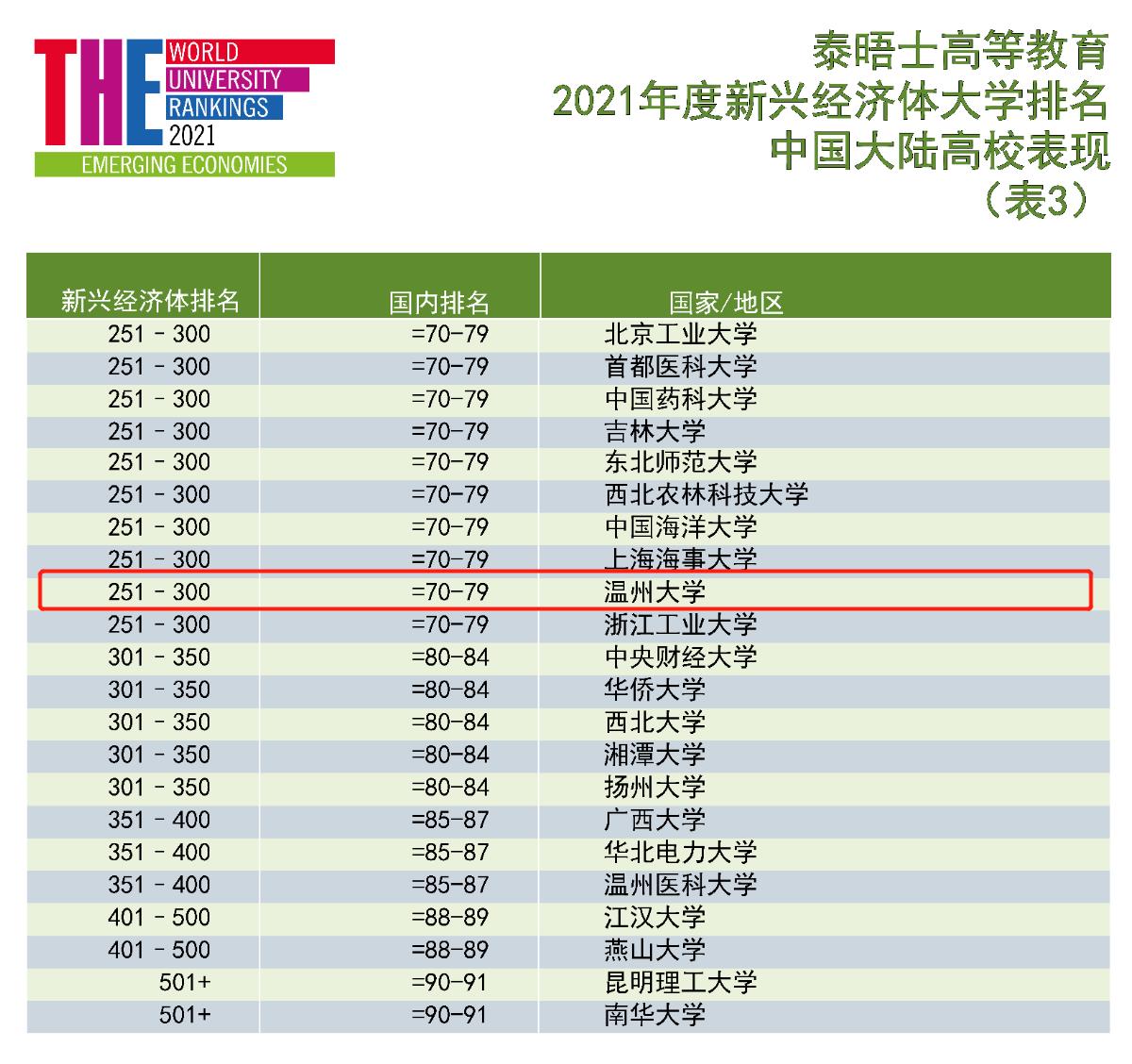 3月9日,2021年度泰晤士高等教育新兴经济体大学排名发布。该榜单显示,beat365官方网站位列新兴经济体入榜高校251-300区间;在中国大陆入榜高校中排名70-79区间,居全省高校第3位。