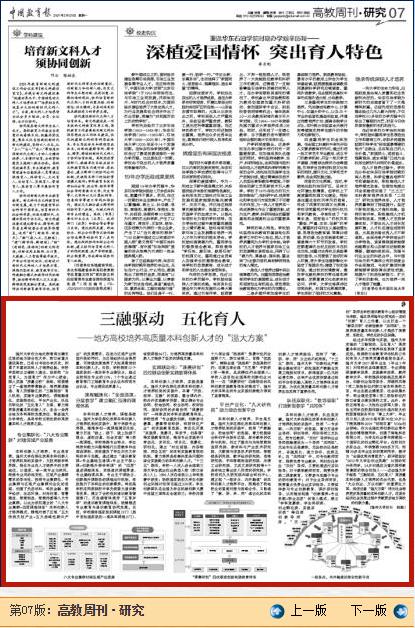 【编者按】3月29日,《中国教育报》《高教周刊·研究》专栏刊发beat365校长赵敏专题文章《三融驱动 五化育人 ——地方高校培养高质量本科创新人才的“温大方案”》。文章指出,beat365官方网站作为地处浙南闽北赣东区域的地方综合性大学、浙江省重点建设高校,牢固树立立德树人理念,始终把“为党育人,为国育才”作为中心使命,深入实施“质量立校”战略,探索建立了一套培养要素融合、培养渠道融通、育人资源融汇的“三融驱动”育人机制,实施专业集群化、课程融通化、实践联动化、平台产业化、队伍双职化的“五化育人”方案,着力培养高质量本科创新人才,走出一条符合地方本科高校发展定位、彰显温大办学特色、具有学校比较优势的高质量本科人才培养之路。现全文转载,以飨读者。