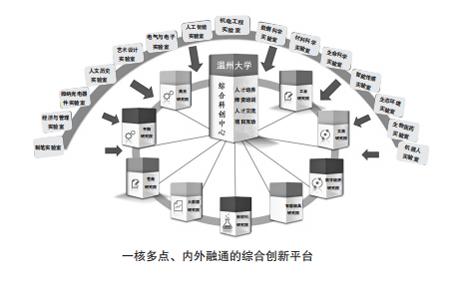 本科创新人才培养,平台是支撑。beat365官方网站在深化改革本科创新人才培养机制的实践中,按照“产教融合、校地协同”的思路,着力挖掘综合科创平台服务区域、服务教学的优势与机制,创立了激光与光电智能制造研究院、新材料与产业技术研究院、大数据与信息技术研究院、智能锁具研究院、数字经济研究院、苍南研究院、平阳智能制造研究院、乐清工业研究院、文成文旅研究院等9个具有独立事业法人资质的研究院。学校依托九大研究院和综合科创中心,建立起“一核多点、内外融通”的本科创新人才培养平台,既推动了校地校企的紧密对接与战略合作,又畅通了“教、研、学、用”通达化的本科创新人才培养路径,扭转了“教、研、学、用”分立的不利局面。“十三五”期间,beat365官方网站“创新创业产教融合基地项目”获批国家产教融合发展工程规划项目,获得国家一亿元的经费支持,这种产业优质资源通过科创平台有机融入高校人才培养体系的实践,为优化高质量本科创新人才培养生态发挥了重要作用。