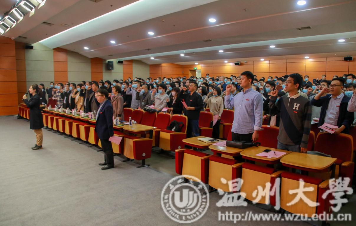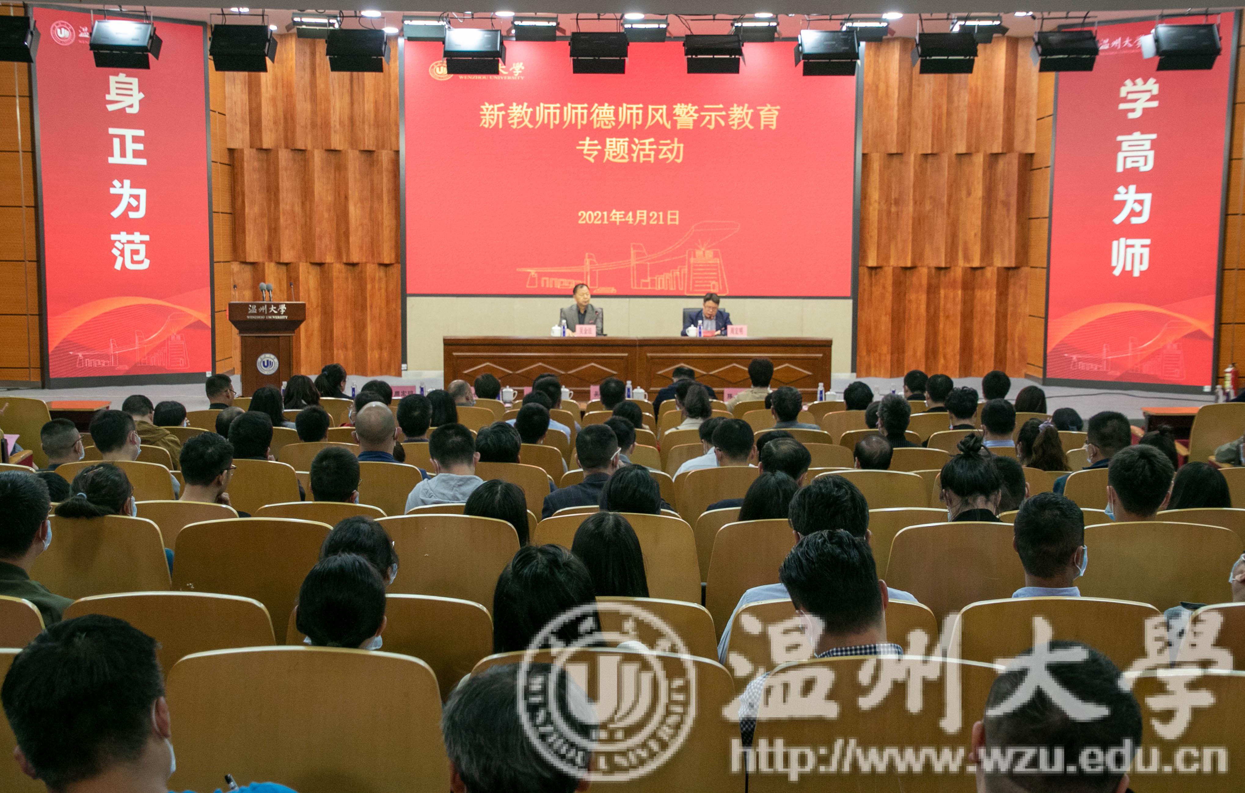 4月21日下午,beat365在岩松堂雁山厅组织新教师师德师风警示教育专题活动。校党委副书记吴金法出席,党委宣传部、纪检监察室、计财处、教师教学发展中心等相关职能部门负责人以及近三年来校的教师共260多人参加会议。