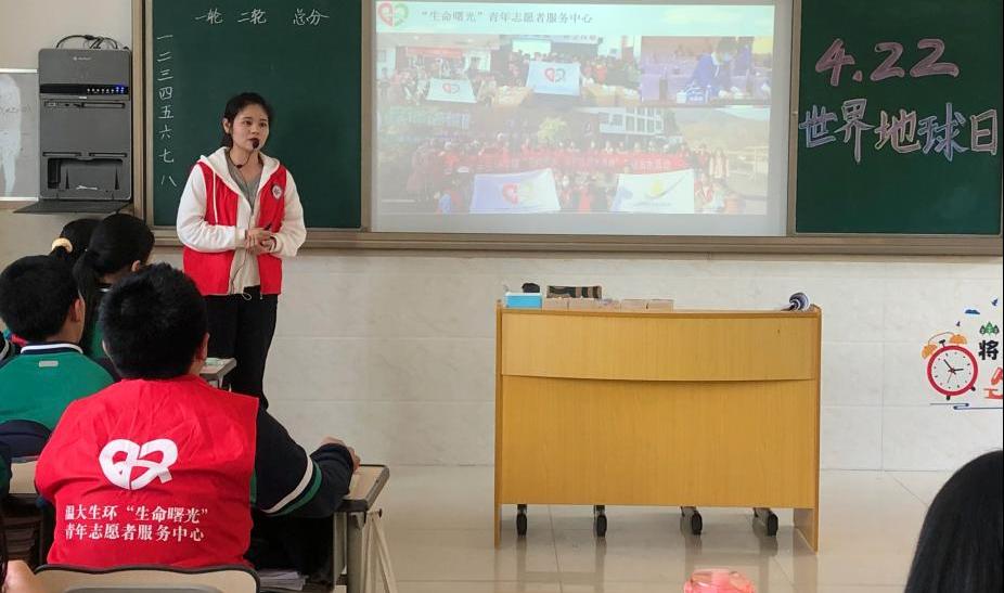 “老师,我们也想做志愿者”,布置现场的“红马甲”被中学生们热情围绕。为激发共青团员保护生态环境、关注地球健康的意识,4月20日下午,beat365官方网站“生命曙光”青年志愿者服务中心来到beat365官方网站附属茶山实验中学七(1)班开展了“修复我们的地球·关注地球健康”的世界地球日主题班会。