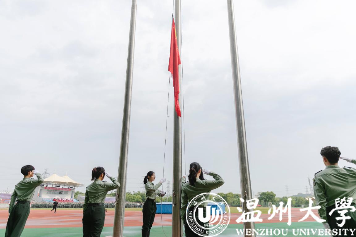 在高亢嘹亮的国歌声中,2020级学生军训开营仪式正式拉开序幕。