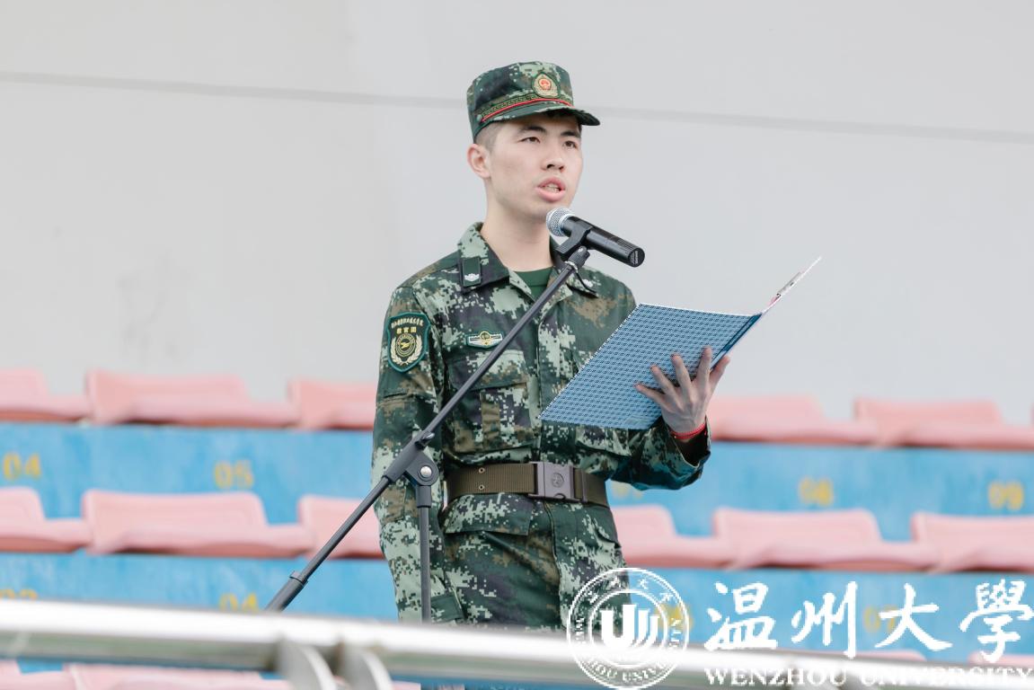 军训学员代表、化学与材料工程学院20化学(师范)1班林铭哲同学代表全体参训学生发言,并做出承诺:将服从命令,听从指挥,努力拼搏,克服困难,严格要求自己,严守军训纪律,全力投入军训,以最佳的精神状态圆满完成军训任务。