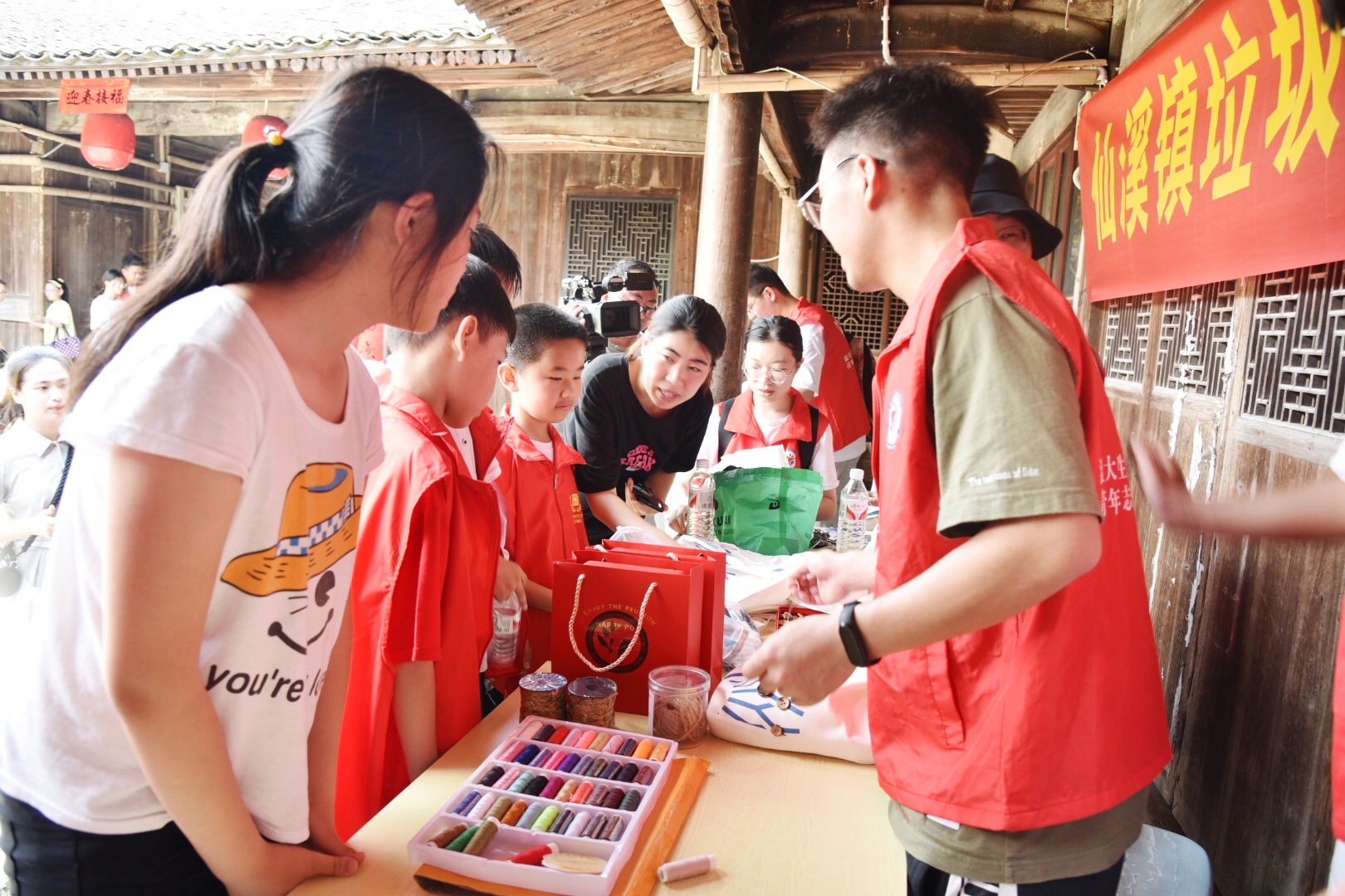 beat365官方网站生命与环境科学学院“生命曙光”青年志愿者服务中心的志愿者们与欣灵协会的社员们在北閤村旧物循环活动点开展了“旧物循环乐玩转,无废理念亲实践”为主题的旧物循环改造系列活动,志愿者们将事先收集到的闲置品、一次性用品等旧物整齐摆放在活动现场的桌子上,和村民们一起对这些旧物进行二次改造,用独特的创造力赋予它们新的生机。让村民通过自己的巧手实现旧物的循环利用,践行环保理念。