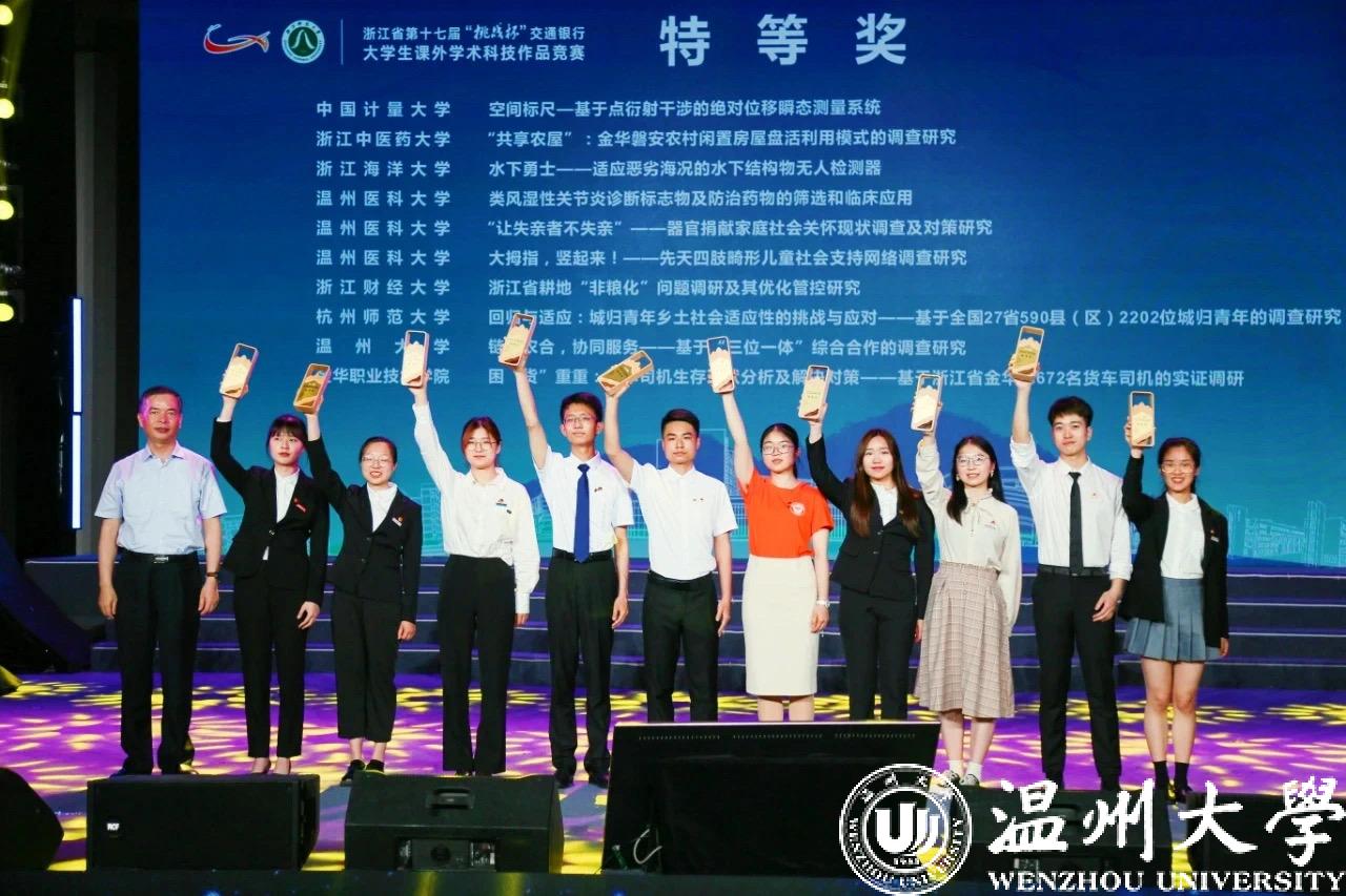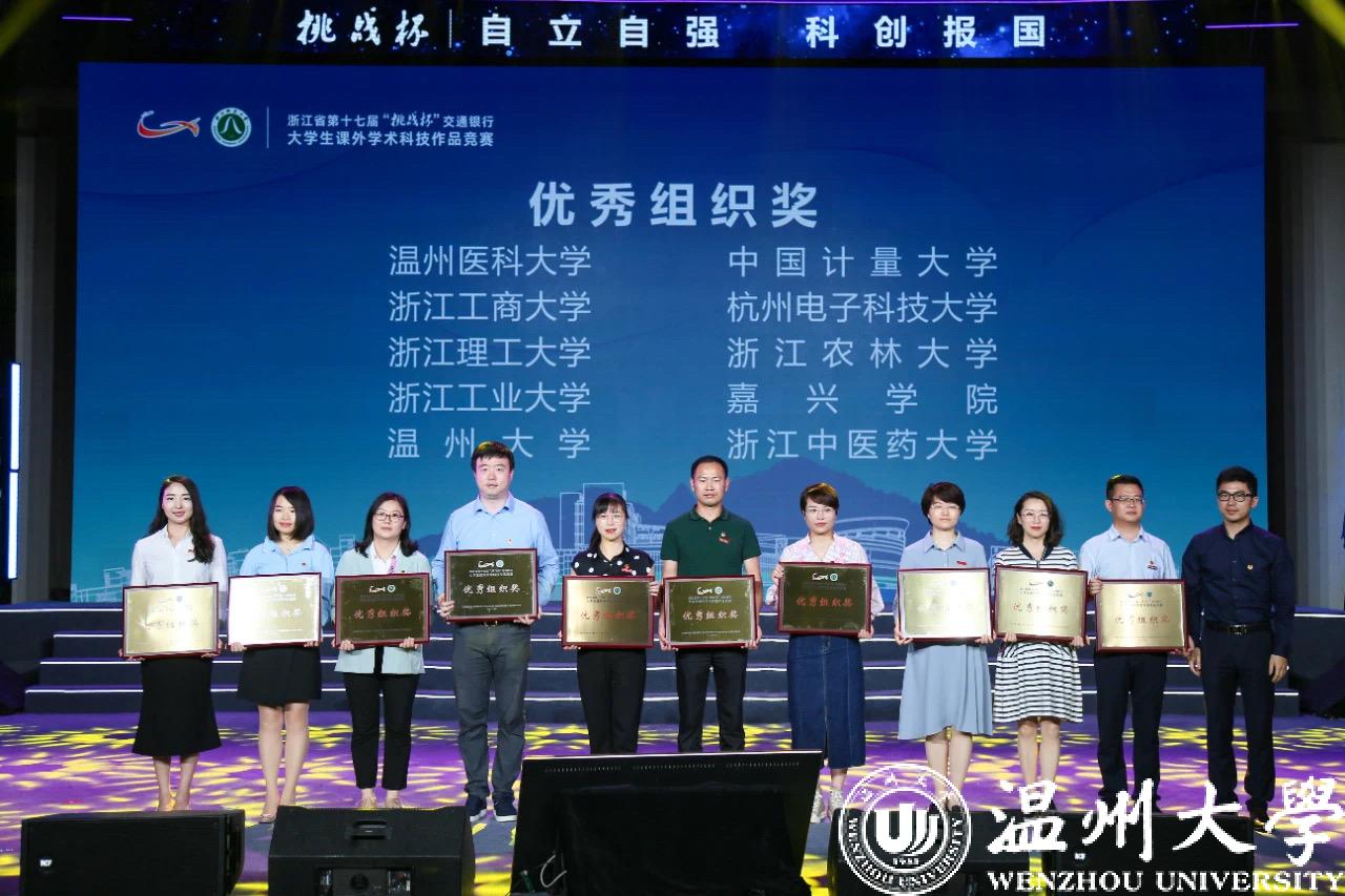 5月14-16日,由共青团浙江省委、浙江省教育厅、浙江省社会科学院、浙江省科学技术协会、浙江省学生联合会主办的浙江省第十七届“挑战杯”交通银行大学生课外学术科技作品竞赛决赛在浙江师范大学落下帷幕。beat365推送的33件优秀作品经过激烈角逐,喜获特等奖1项、一等奖5项、二等奖10项、三等奖14项,学校获优秀组织奖。