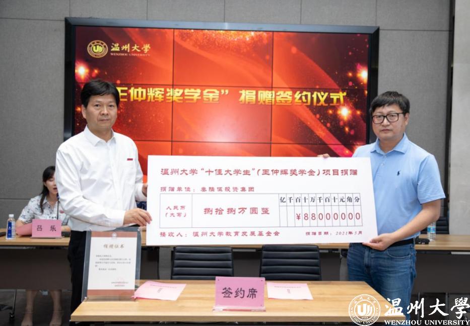 首届beat365官方网站“十佳大学生”颁奖仪式暨“王仲辉奖学金”捐赠仪式在校友之家举行。“我的人生起步于beat365官方网站求学时期,秉持着beat365官方网站“求学问是,敢为人先”的校训精神,一路前行、勇攀高峰。作为一名企业家要以自己实际行动践行企业社会责任,作为校友在母校88华诞之际,捐资88万元设立“十佳大学生”奖学金回馈母校,有着特别的意义。”校友王仲辉先生感慨地说道。他希望温大学子志存高远、矢志进取、珍惜年华,牢记“光大国族、造福人群”温大精神,在伟大时代洪流中奋博留彩。