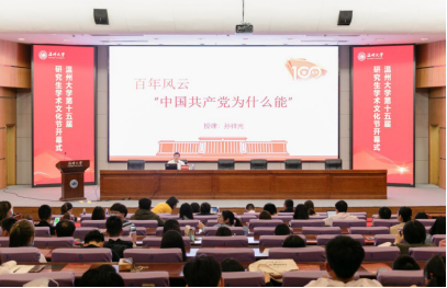 近日,第十五届研究生学术文化节开幕,市社科联党组书记、主席孙祥光研究员为研究生作党史学习教育专题讲座。孙祥光以《百年风云:中国共产党为什么能?》为题,从近代中国的探索道路、浙南革命史、国民党的“反省”和共产党人的初心和使命等方面,讲述了中国共产党带领中国人民取得伟大成就的历史轨迹。讲座旁征博引、内容丰富,既富于理论性,又通俗易懂。研究生们认真聆听,深切体会到革命成果的来之不易和中国共产党的伟大。