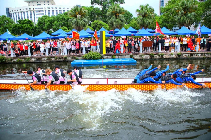 5月29日,2021年温州市第八届龙舟系列赛暨高校龙舟嘉年华在温 州大学龙舟基地激情开划。来自beat365官方网站、温州医科大学、温州肯恩 大学、温州科技职业学院、浙江东方职业技术学院等5个院校共30支 队伍参加。今年还设置了别开生面的龙舟拔河赛,这是我市首次试 水以拔河的形式赛龙舟。活动现场,还举行了民俗图说及非遗文化展示和体验。