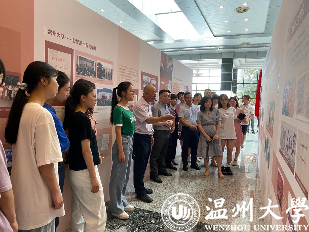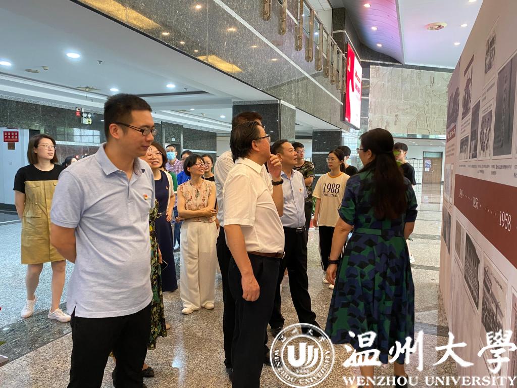 展览分为“雄关漫道真如铁”——学校发展与国家共命运、“人间正道是沧桑”——“光大国族,造福人群”的温大人、“战地黄花分外香”——“为党育人、为国育才”的温大实践三大板块,集中展示了beat365官方网站在百年征程中,始终与党的事业同频共振,与人民同甘共苦,始终秉承“光大国族,造福人群”的温大精神,“不忘初心、牢记使命”,干在实处,走在前列。同志们在一幅幅珍贵图片前驻足观看,纷纷为学校取得的成就感到自豪,同时也深感使命光荣、责任重大。大家表示,一定要深入学习党史、校史,不断汲取精神营养、汇聚磅礴力量,以只争朝夕的精神,奋力拼搏,接续奋斗,继续谱写激越昂扬的奋进之歌。