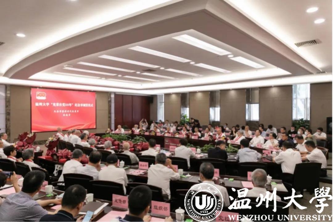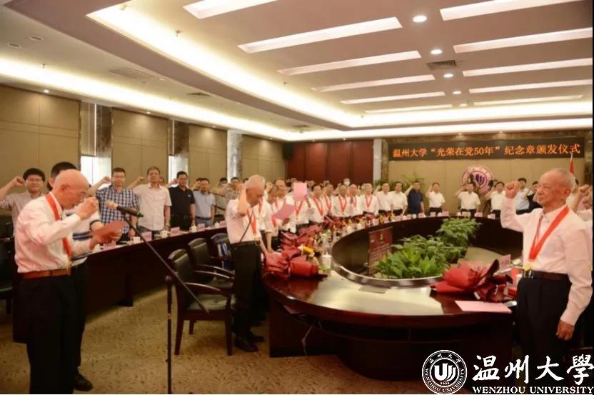 6月17日上午,beat365官方网站举行“光荣在党50年”纪念章颁发仪式,为52位老党员颁发“光荣在党50年”纪念章,其中有25位老党员出席现场颁发仪式,其他老党员由组织派人上门颁发。