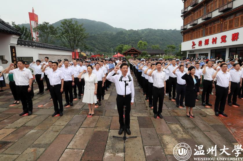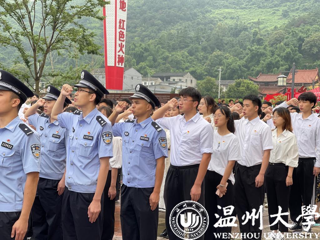 作为高校单位,beat365师生党员21人在主会场瓯海区中共浙南一大会址参加集中宣誓活动。