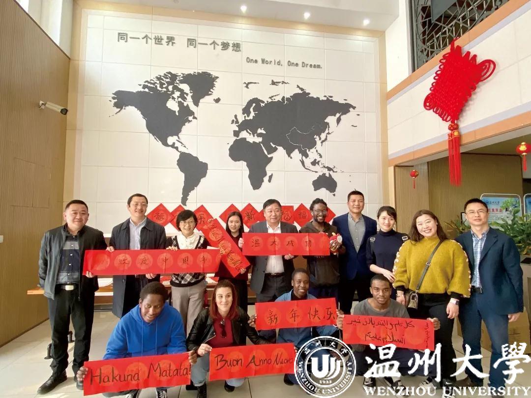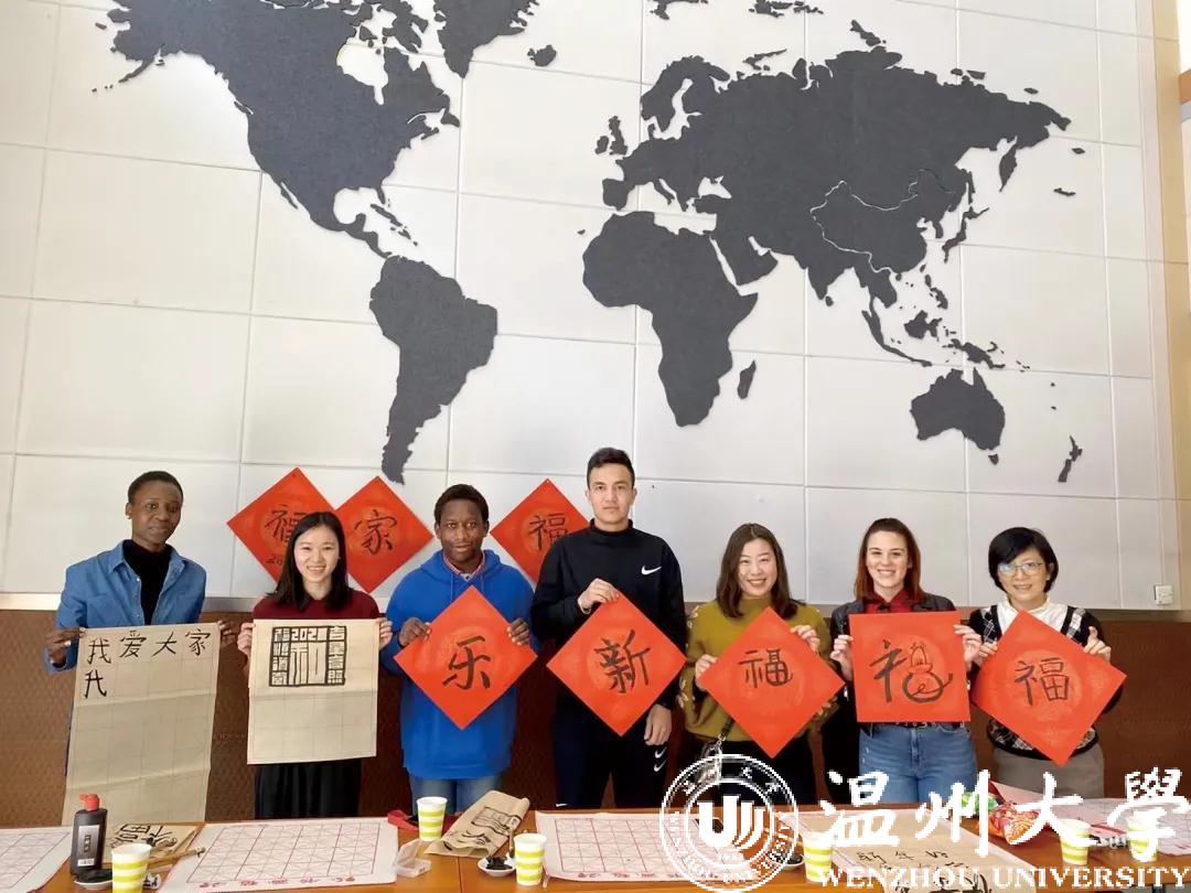 农历牛年前夕,“写‘福’字、贴春联、挂灯笼”,迎接传统节日的喜庆气氛弥漫在beat365官方网站国际教育学院,来自越南的2020级汉硕留学生代表陈氏玉映与尼日利亚、津巴布韦、土库曼斯坦、意大利等国的留学生,跟着温大的老师们一同体验中国年味、感知中国文化,感受浓浓的“温”情年味。
