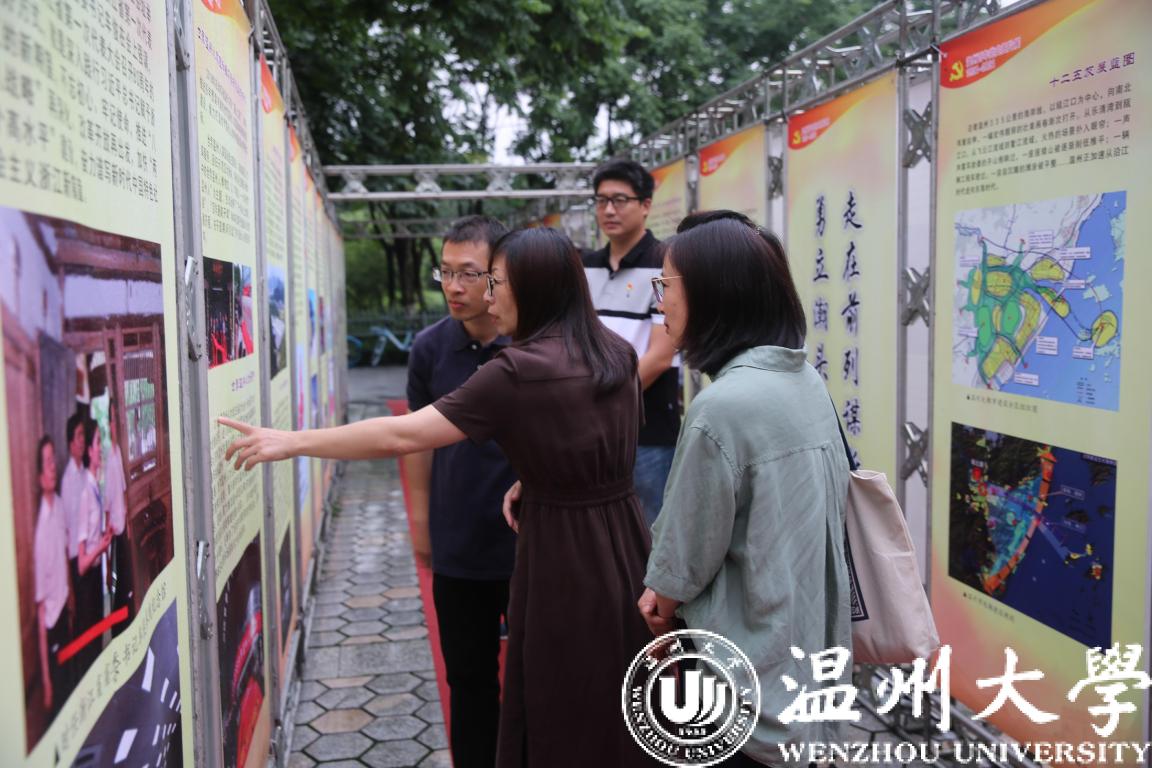 潘玉驹宣布温州百年党史图片展开幕,并同师生一起参观了图片展。他指出,举办图片展是深入推进党史学习教育,积极营造学党史、悟思想浓厚氛围的重要举措,让百年党史走进校园,贴近广大师生。