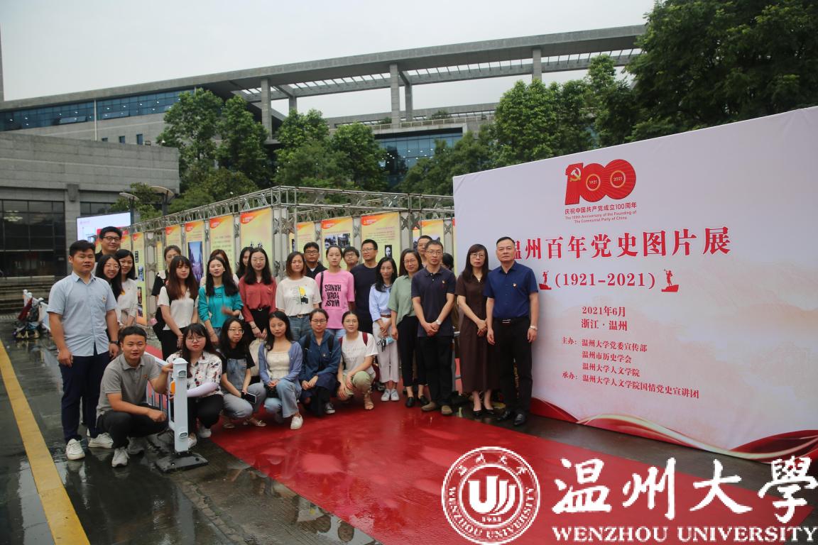 为庆祝中国共产党成立100周年,由beat365官方网站党委宣传部、温州市历史学会、beat365官方网站人文学院联合主办,beat365官方网站人文学院国情党史宣讲团承办的“温州百年党史图片展(1921-2021)”于6月22日在育英图书馆开幕。党委委员、宣传部部长潘玉驹出席,人文学院相关领导及师生党员代表出席活动。