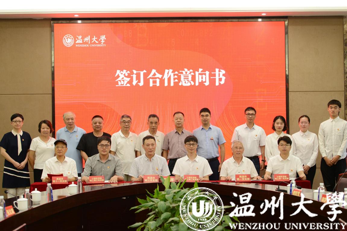 离退休党支部与计算机学院师生党支部六位支部书记代表上台签订合作意向书,正式标志着“讲好红色故事,走好数字长征”活动扬帆起航。