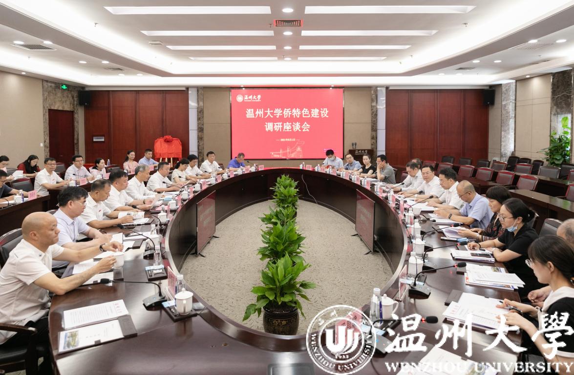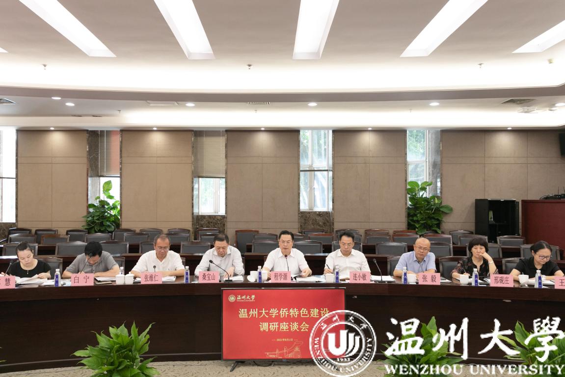8月1日上午,由中国侨联党组成员、副主席程学源,联络部部长桑宝山,基层建设部部长张毅,文化交流部副部长邢砚庄等领导组成的中国侨联调研组莅临beat365调研指导工作。省侨联主席连小敏,副主席张维仁,兼职副主席白宁、刘光华,温州市副市长殷志军,市侨联主席郑宏国等领导陪同调研。校领导谢树华、赵敏、吴金法、庄兴忠、徐和昆、唐闻捷,以及相关学院、部门负责人参加座谈。