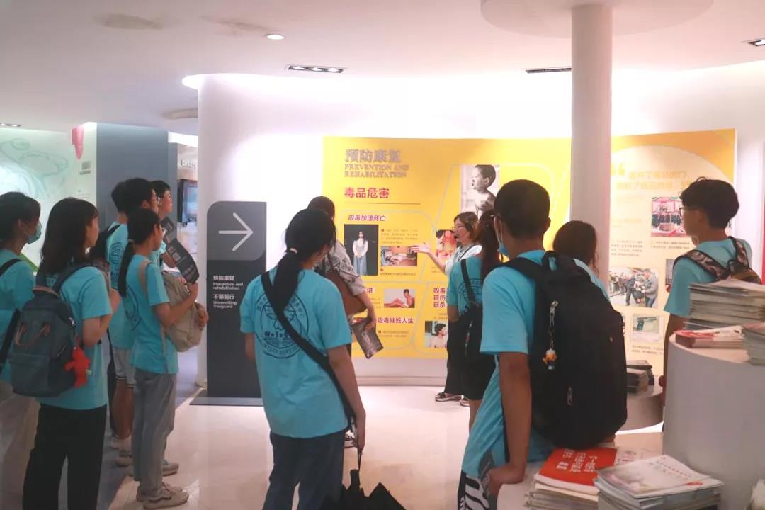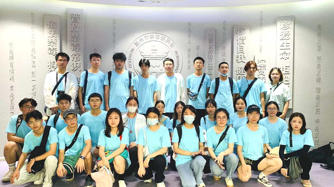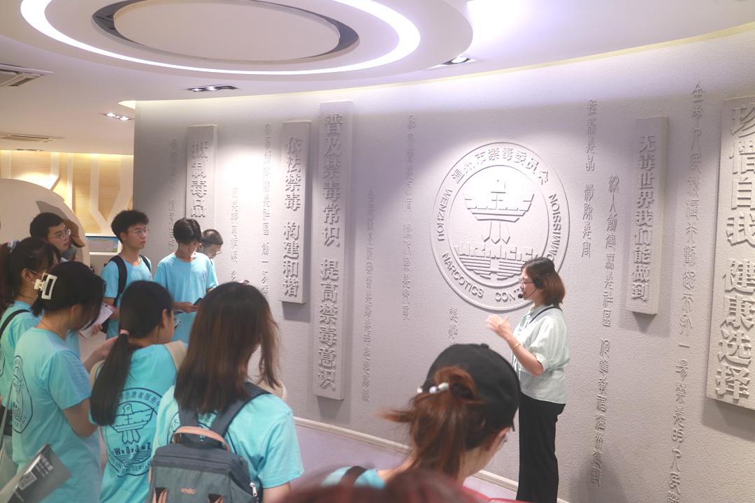 在参观禁毒教育基地时,温州市禁毒教育基地讲解员吴晓燕老师带领beat365官方网站“无毒青春”暑期社会实践队26名大学生先后了解世界毒品态势、中国禁毒简史等禁毒知识。