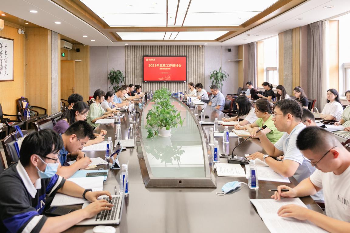 会议小组讨论环节,参会人员围绕习近平总书记在庆祝中国共产党成立100周年大会上的讲话、《关于新时代加强和改进思想政治工作的意见》和《深化新时代教育评价改革总体方案》等理论学习材料和辅导员素质能力提升等议题畅所欲言,交流心得,分享感悟。