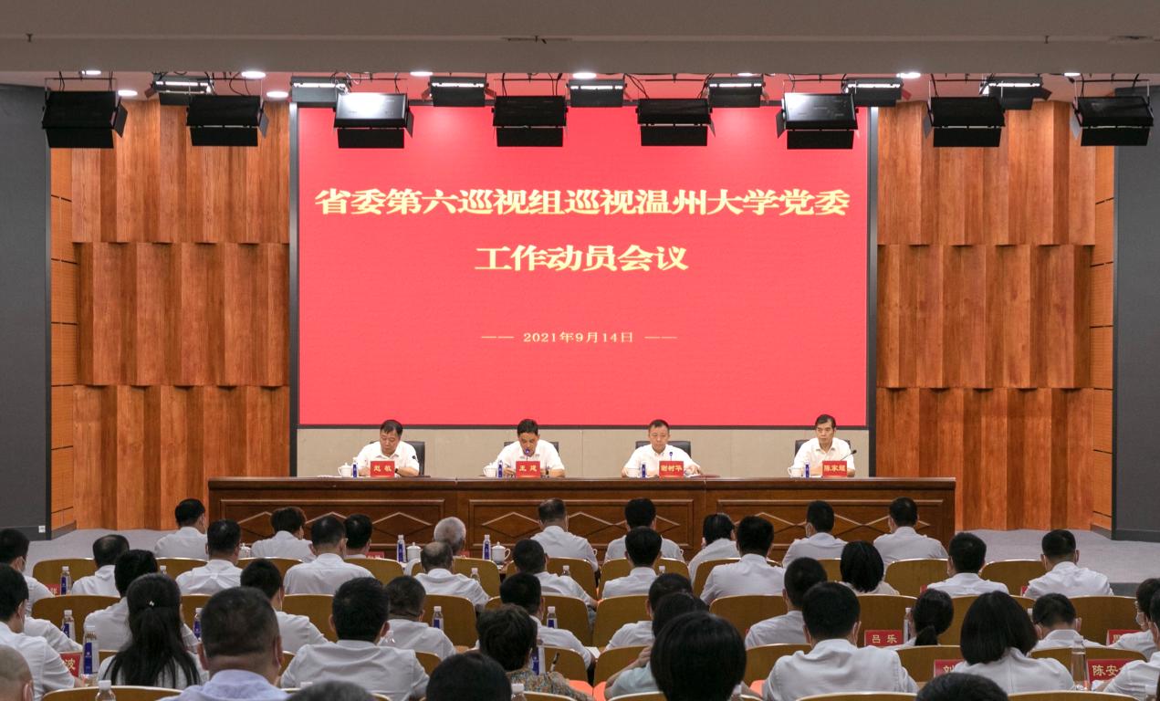 根据省委统一部署,9月14日上午,省委第六巡视组巡视beat365官方网站党委工作动员会议召开。会前,省委第六巡视组组长王建主持召开与校党委书记谢树华和党委副书记、校长赵敏的见面沟通会,传达了省委书记专题会议的有关精神,通报了有关工作安排。会上,王建作了动员讲话,对做好巡视工作提出要求,谢树华主持会议并作表态讲话。