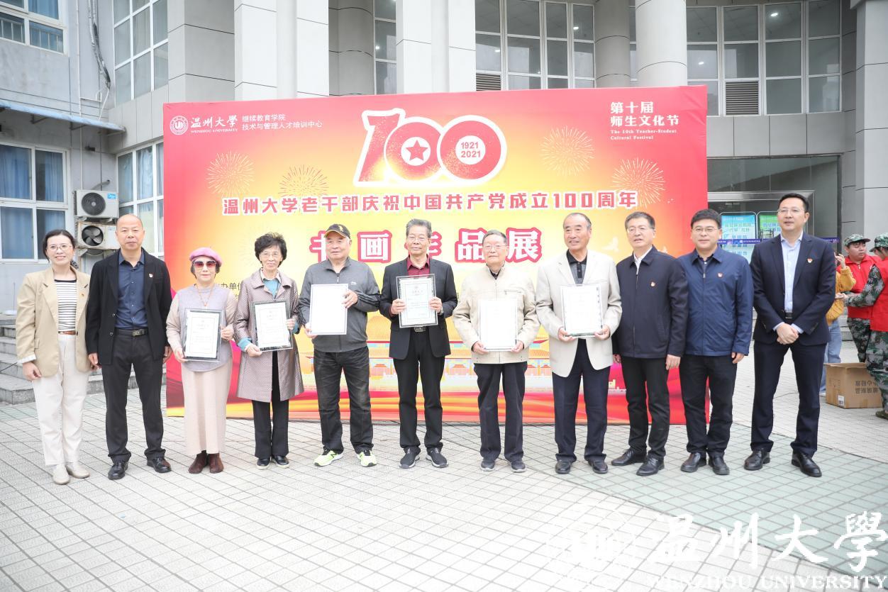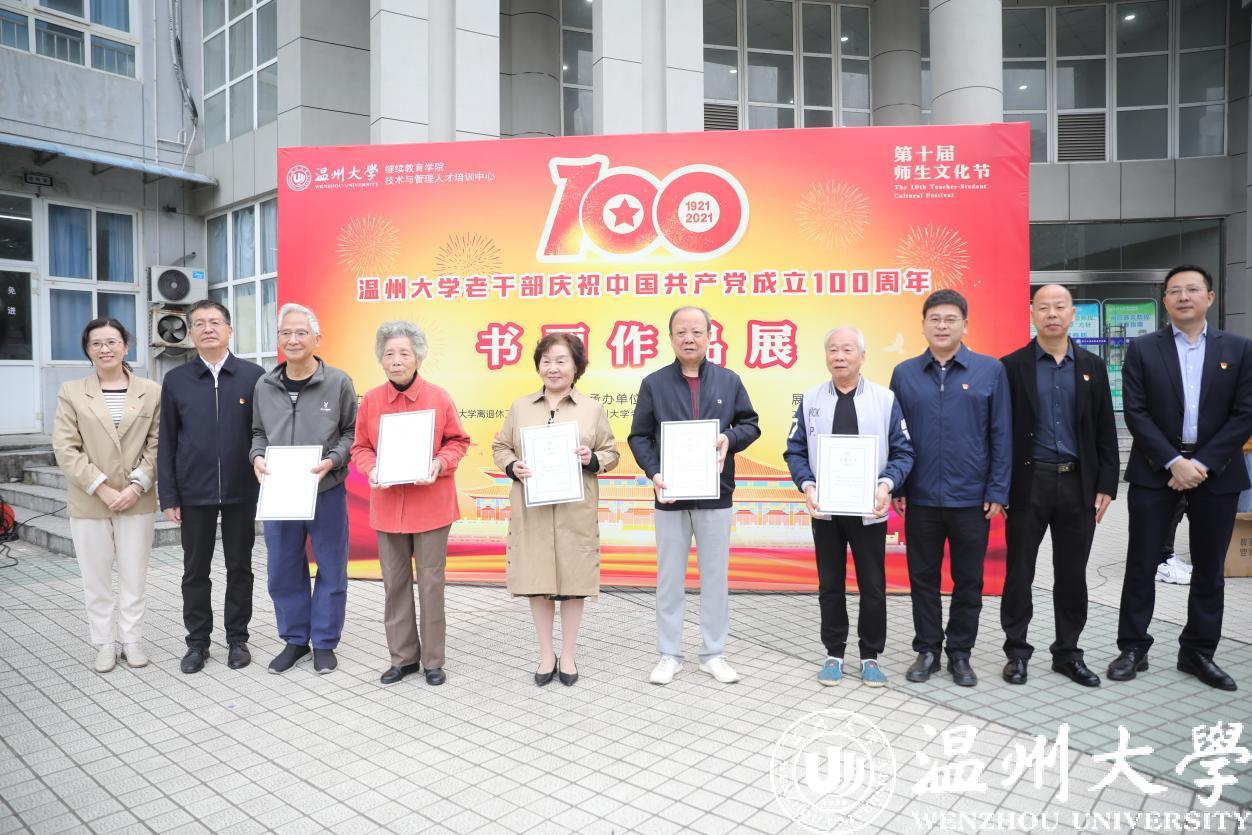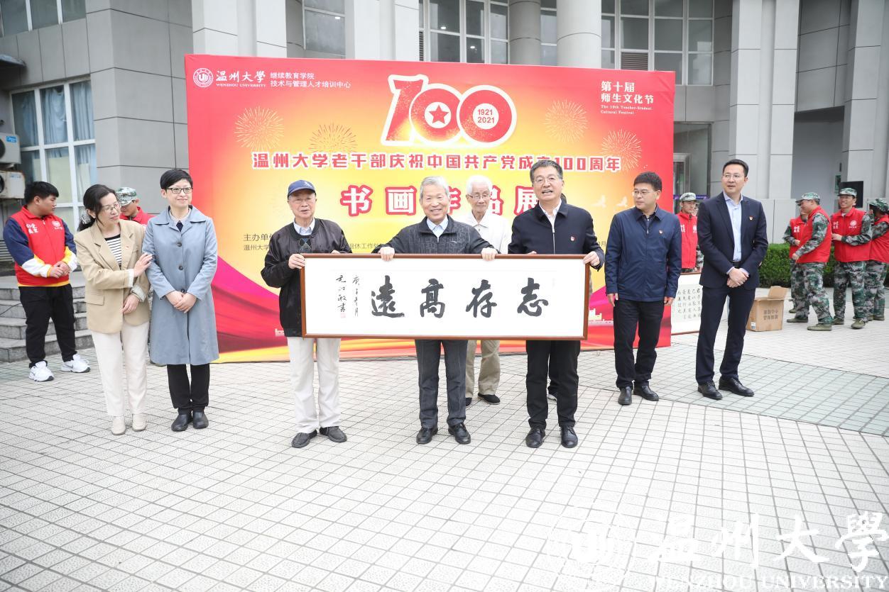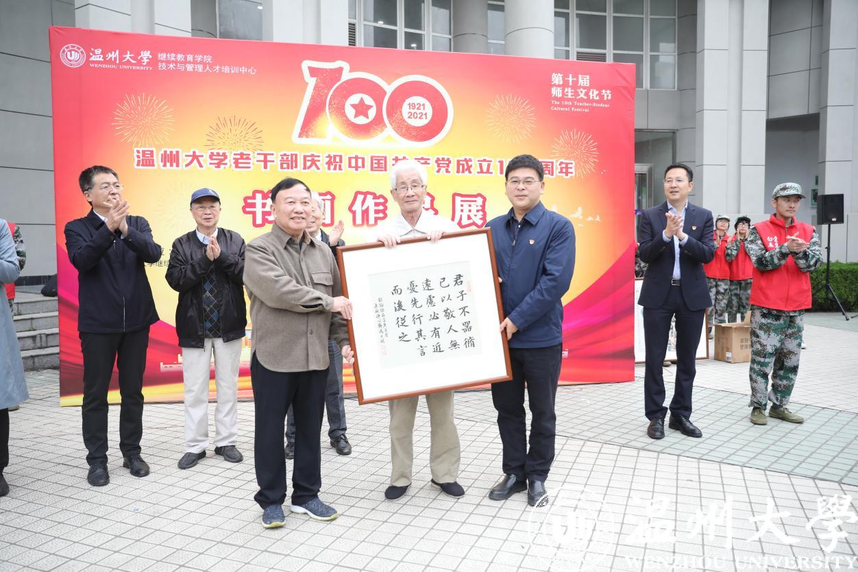 丹青绘百年,翰墨书党恩。10月26日上午,beat365官方网站老干部庆祝中国共产党成立100周年书画作品展开幕式暨老干部书画院书画作品捐赠仪式在beat365学院路校区举行。离退休老领导金礼义、林选青、毛政敏,beat365官方网站老干部书画院院长冯大明、艺术指导师沈洪保副教授等离退休老干部,离退休处、继续教育学院负责人以及师生代表出席开幕式。