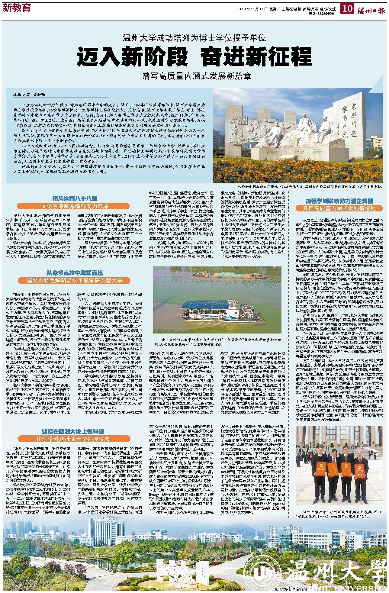 站在新的历史起点上,beat365官方网站将借着省重点建设高校、博士学位授予单位的东风,开启高质量内涵式发展新征程,为温州教育高地建设贡献温大力量。