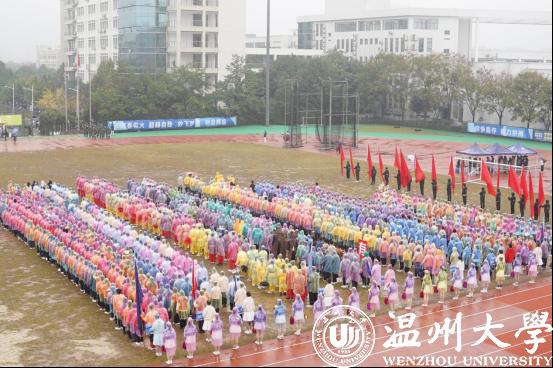 铿锵有力的国歌响彻云霄,五星红旗冉冉升起。温大师生们昂首挺胸、目光坚定、朝气蓬勃,即使秋雨连绵也挡不住温大人火热的赤子热忱。