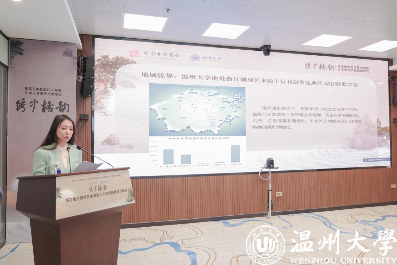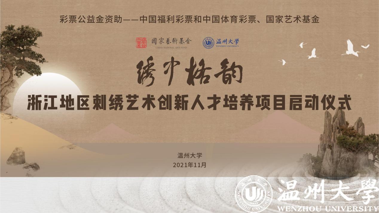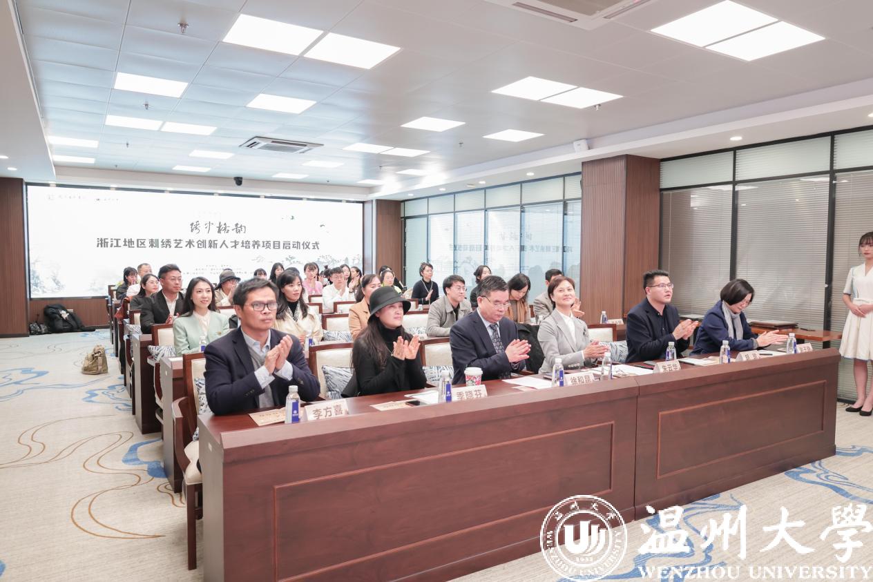 11月22日,由国家艺术基金资助,beat365官方网站承办的“浙江地区刺绣艺术创新人才培养”项目在beat365启动。温州市文化广电旅游局局长朱云华、副局长李方喜,副校长徐和昆,发绣研究所所长、中国非遗保护协会刺绣专业委员会秘书长孟永国,浙江理工大学国际时装技术学院院长季晓芬和来自江苏、上海、浙江、北京的学员参加培训。