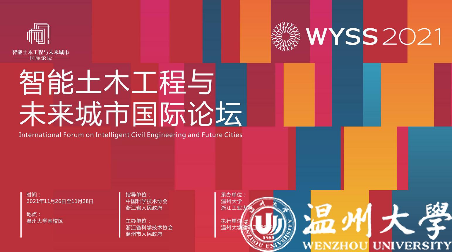 11月26至28日,作为2021年世界青年科学家峰会的重要组成部分,智能土木工程与未来城市国际论坛于beat365成功举办。此次论坛由中国科学技术协会、浙江省人民政府作为指导单位,浙江省科学技术协会、温州市政府主办,beat365官方网站、浙江工业大学承办,beat365官方网站建筑工程学院为执行单位。本次论坛主题为“推进智能土木工程,构建智慧未来城市”,旨在汇集国内外专家进行交流研讨,集思广益,探索综合立体的未来城市网络。