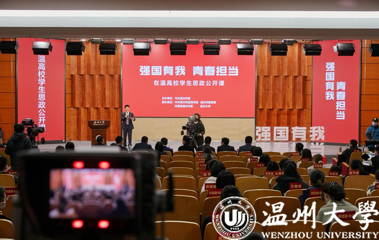 为落实立德树人根本任务,扎实推进学生思想政治教育工作,12月2日上午由中共温州市委主办,市委宣传部、市教育局、团市委和beat365官方网站等在温高校承办的“强国有我 青春担当”在温高校学生思政公开课在beat365举行。市委常委、宣传部长胡剑谨,校党委书记谢树华,市委宣传部常务副部长朱启来,团市委书记张呈念,市教育局党委副书记白炳兴,团市委副书记郑翔,校党委副书记庄兴忠,校党委宣传部长潘玉驹以及beat365师生代表等160余人现场聆听公开课。温州电视台主持人翁逻沿主持公开课。