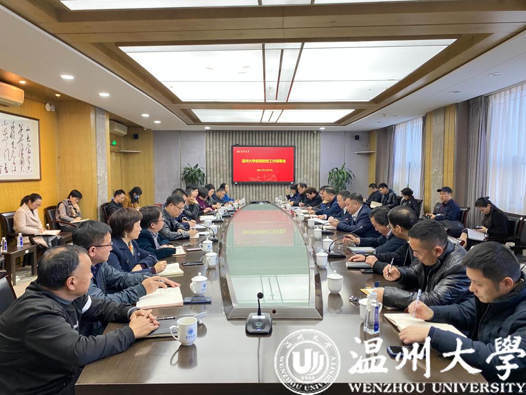 校党委书记谢树华作工作部署。他指出,目前温州市疫情防控已经从平时模式转向战时模式,beat365官方网站也必须进入战斗状态,全面紧起来、动起来、严起来,坚决筑牢疫情防控的铜墙铁壁。谢树华强调,当前学校疫情防控工作要做到“三个严”。一是严阵以待。面对严峻形势,要坚决克服麻痹思想;面对常态防控,要坚决克服厌战情绪;面对工作盲区,要坚决克服侥幸心理。二是严防严控。重点做好6个方面的严防严控工作。要做好人员排查和管控落实,密切关注把握好动态防控要求,精确掌握师生行程轨迹和健康状况,严格落实重点人员分类健康管控要求。要做好门岗管理和出行审批,严把校门入口关,严把校外人员入校审批关、严把出行审批关。近期在省内疫情风险未明之前,原则上教师“非必要不离温”,学生“非必要不离校”。要做好教学安排和活动管理,科学有序安排日常教学活动,严格落实省市关于聚集性活动的管理要求。要做好疫苗接种和核酸检测,层层落实做好定期核酸抽测工作,按“应接尽接”的原则,有序推进疫苗加强针接种工作。要做好应急响应和后勤保障,加强防控机制和应急预案的实战演练,切实提高应急处置能力。要做好政策宣传和舆论引导,引导师生不信谣不传谣更不能造谣,及时做好信息告知,提醒师生做好个人防护。三是严明纪律。防控工作最关键就是严抓责任落实,严明防控纪律,责任要一抓到底,执行要一落到底,督查要一严到底。谢树华最后强调,希望全校上下严字当头,众志成城,携手打赢新形势下的疫情防控阻击战。