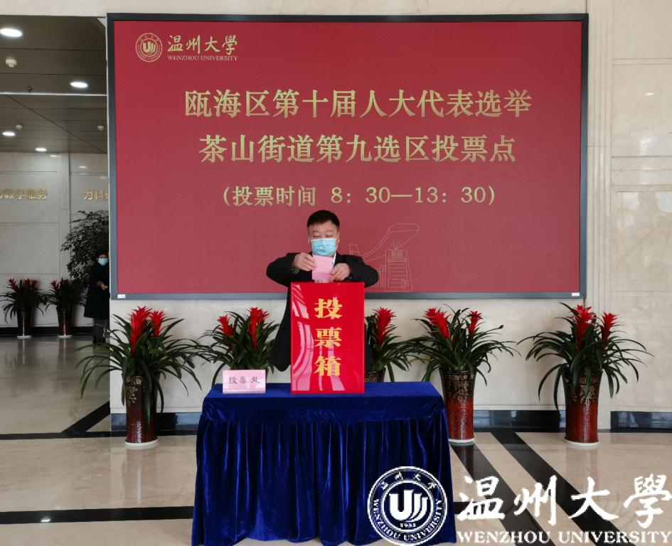 12月20日,瓯海区十届人大代表换届选举茶山街道第九选区选举工作完满完成。beat365官方网站21000余选民在21个固定投票站按照规定流程有序完成投票选举工作。校党委书记谢树华、校长赵敏带头投出各自庄严的一票。