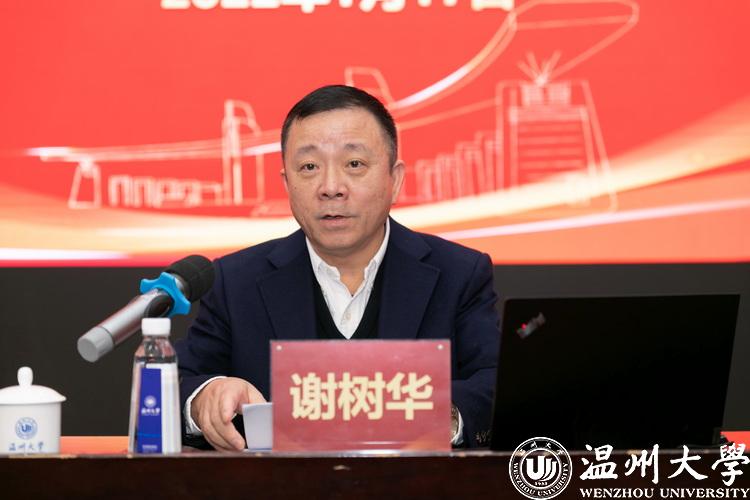谢树华作校情通报。他围绕办学定位、办学优势、三大目标、三项改革、办学治校高分报表介绍学校2021年建设发展情况。他指出,2021年,学校党委坚持以习近平新时代中国特色社会主义思想为指导,牢记习近平总书记“要高度重视教育和人才工作,特别要办好beat365官方网站等高等院校”的殷殷嘱托,带领全体温大人,勠力同心、砥砺前行,实现了一系列重大办学新突破,取得了办学治校的丰硕成果。进入“十四五”,学校将聚焦更讲政治,争做中国特色社会主义大学的模范生;更高水平,跻身全国地方高校第一方阵;更具特色,创建以侨为特色“省部共建”高校;更有作为,全方位服务温州经济社会高质量发展等四条发展主线。