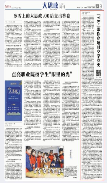 随着VR(虚拟现实)、AR(增强现实)、MR(混合现实)等新技术的发展,思政课堂上有了多种可能性。早在2019年,中共中央办公厅、国务院办公厅在印发的《关于深化新时代学校思想政治理论课改革创新的若干意见》中就提出:大力推进思政课教学方法改革,提升思政课教师信息化能力素养,推动人工智能等现代信息技术在思政课教学中应用,建设一批国家级虚拟仿真思政课体验教学中心。