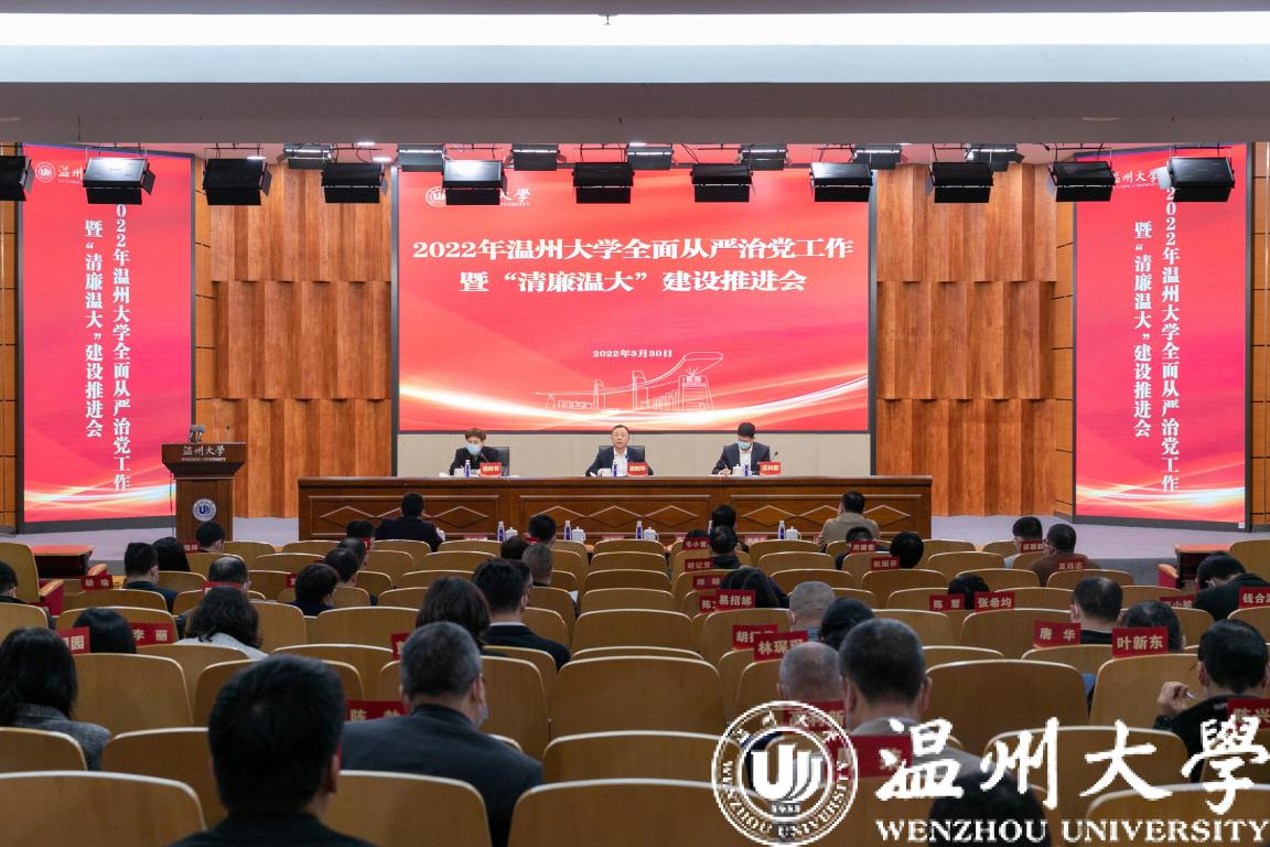 3月30日上午,beat365召开2022年全面从严治党工作暨“清廉温大”建设推进会。全体校领导、校纪委委员、中层干部、学院纪委书记、党总支及直属党支部纪检委员、纪检监察室全体人员参加会议,校党委副书记庄兴忠主持。