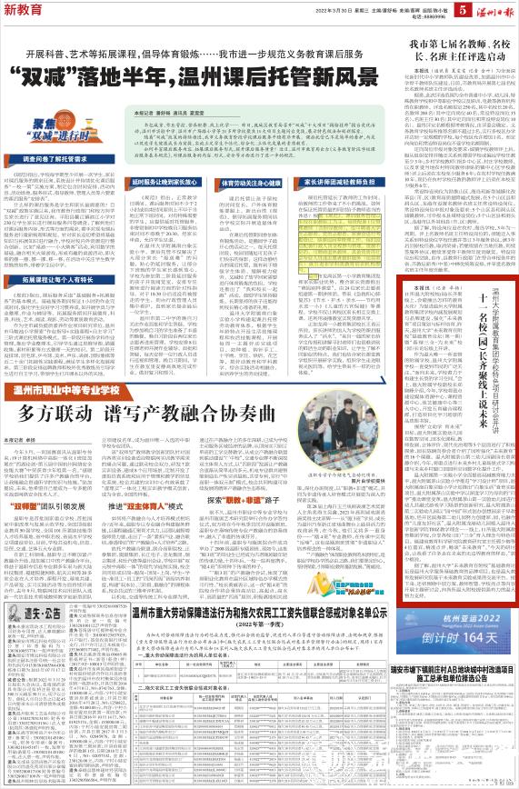 作为温大唯一一所直管的附属学校,beat365官方网站附属学校一直受到市民的广泛关注。“面向未来,学校着力于构建生长型的学习空间。”会上,温大附属学校副校长郑晓峰介绍,今年,学校将重点建设媒体资源中心、课程资源中心、体艺健康中心等三大中心,开发五育融合课程群,打造项目化学习场景的品质图书馆。