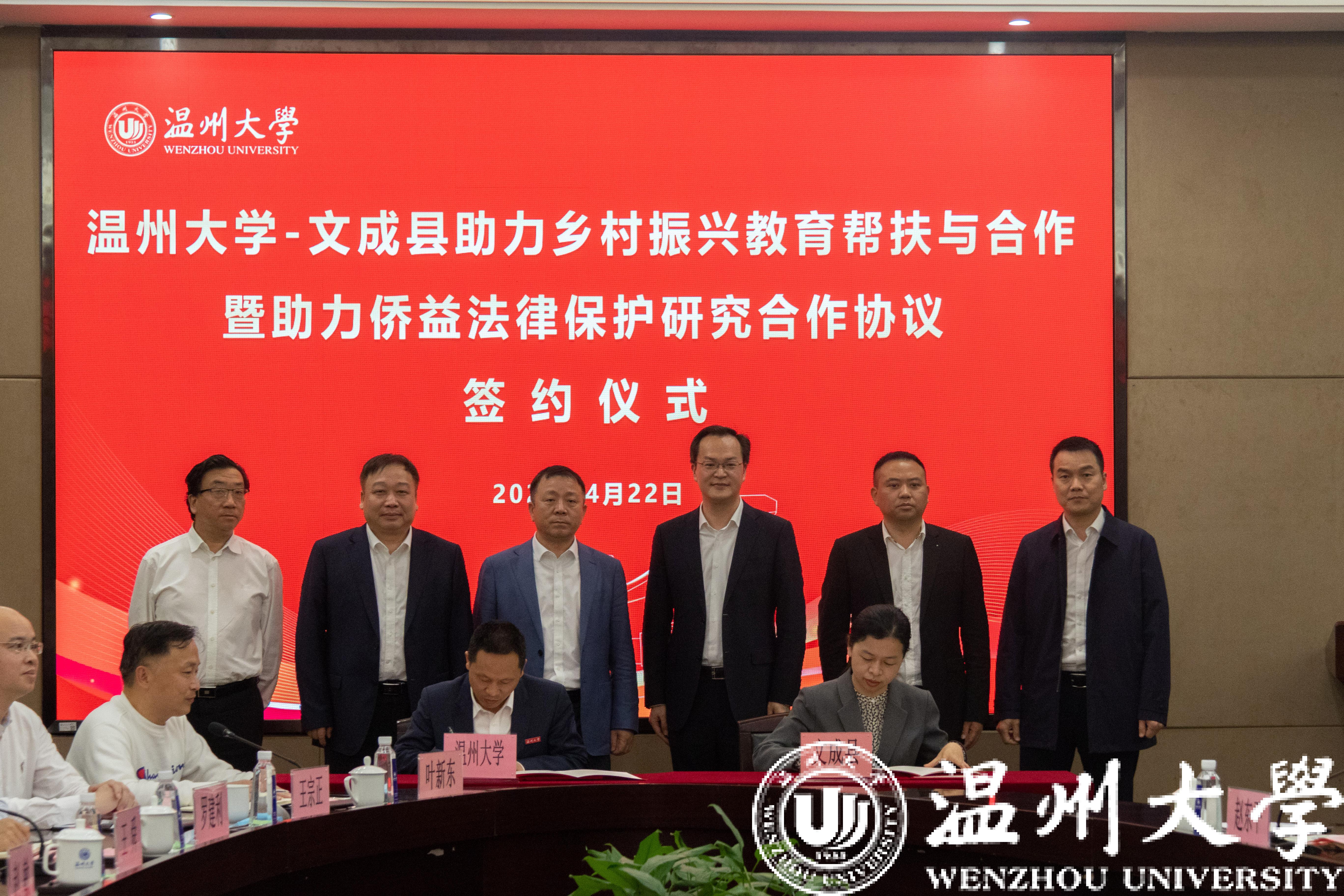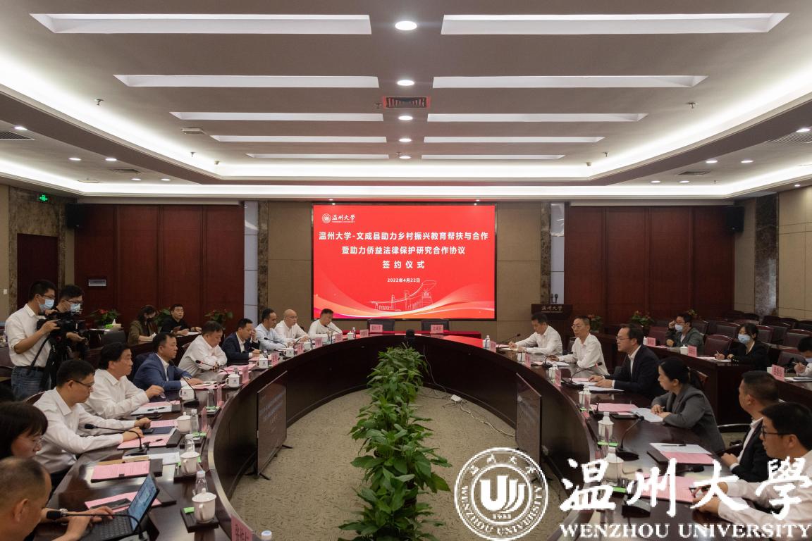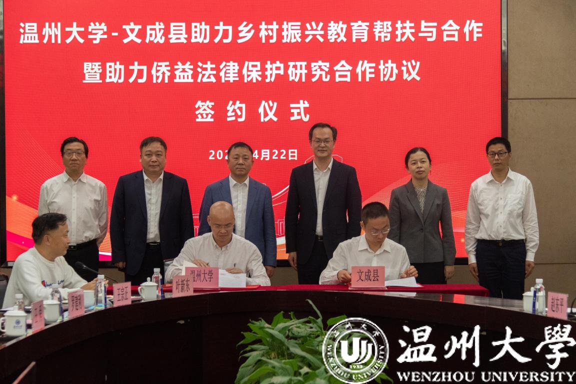 4月22日下午,beat365官方网站-文成县助力乡村振兴教育帮扶与合作暨助力侨益法律保护研究合作协议签约仪式在beat365举行。校领导谢树华、赵敏、蔡曙光、王舜,文成县县委书记刘中华、副县长吴可塑等领导出席仪式。赵敏主持。